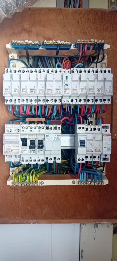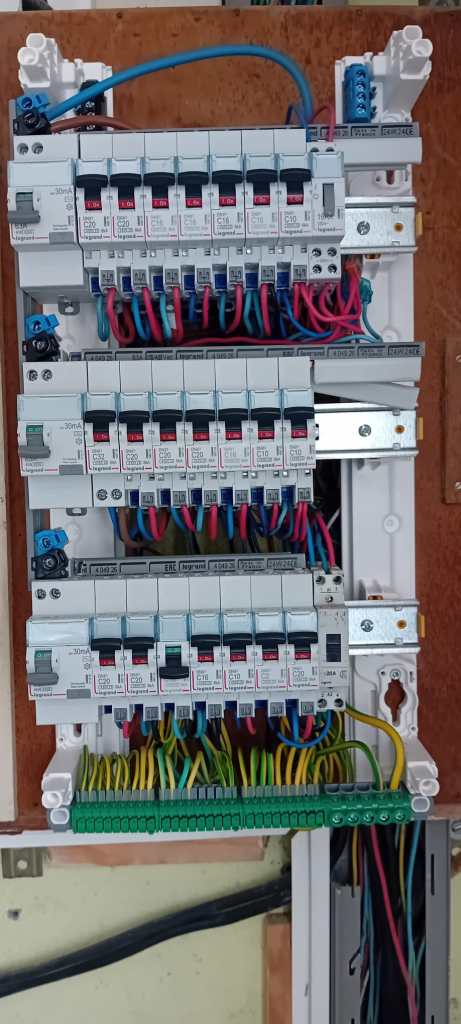 Remise aux norme d’un tableau : passage de 2 rangées à un tableau 3 rangées avec protections différentielles. La terre est ajoutée pour tout le monde !